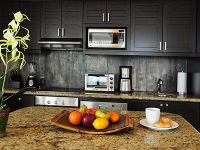 Gourmet kitchen with all cooking, dining, and serving equipment included